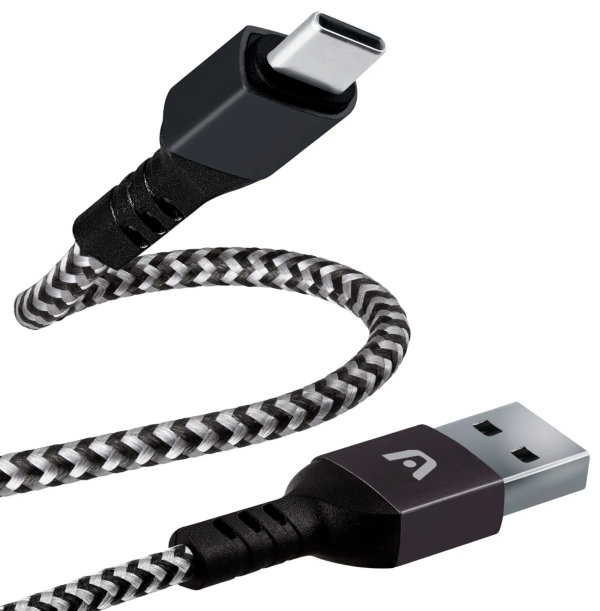 Conectores resistentes: USB-C macho a USB-A macho, compatibles con la mayoría de dispositivos modernos y cargadores tradicionales.